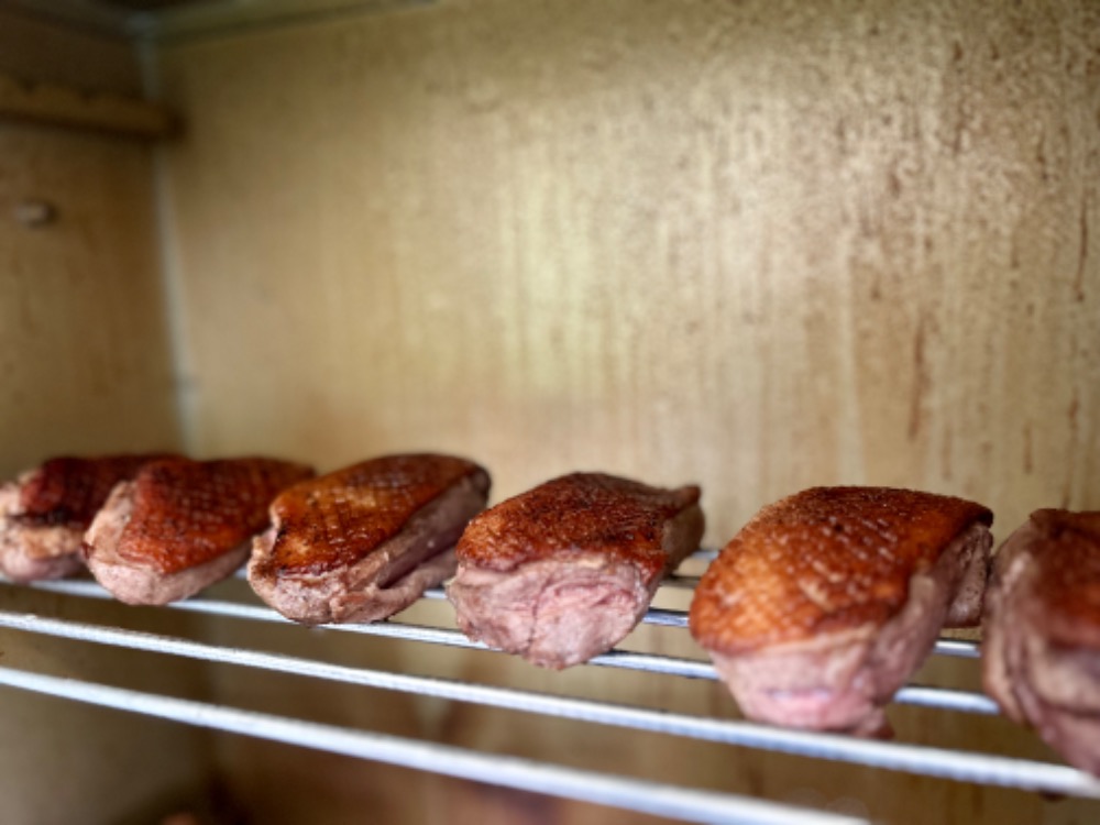 - Pečená ciabatta s uzeným kachním prsíčkem a šlehaným máslem s medvědím česnekem 1ks/os