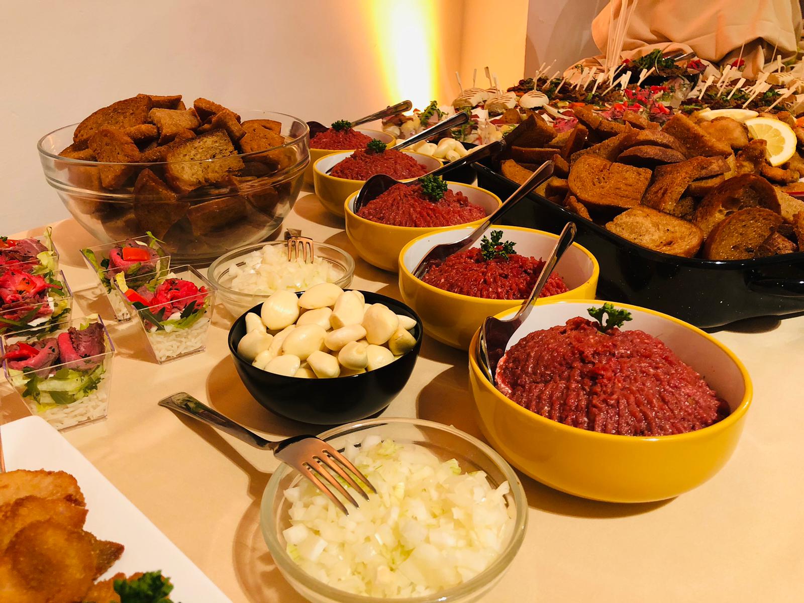 - Tatarák s česnekem a topinkami