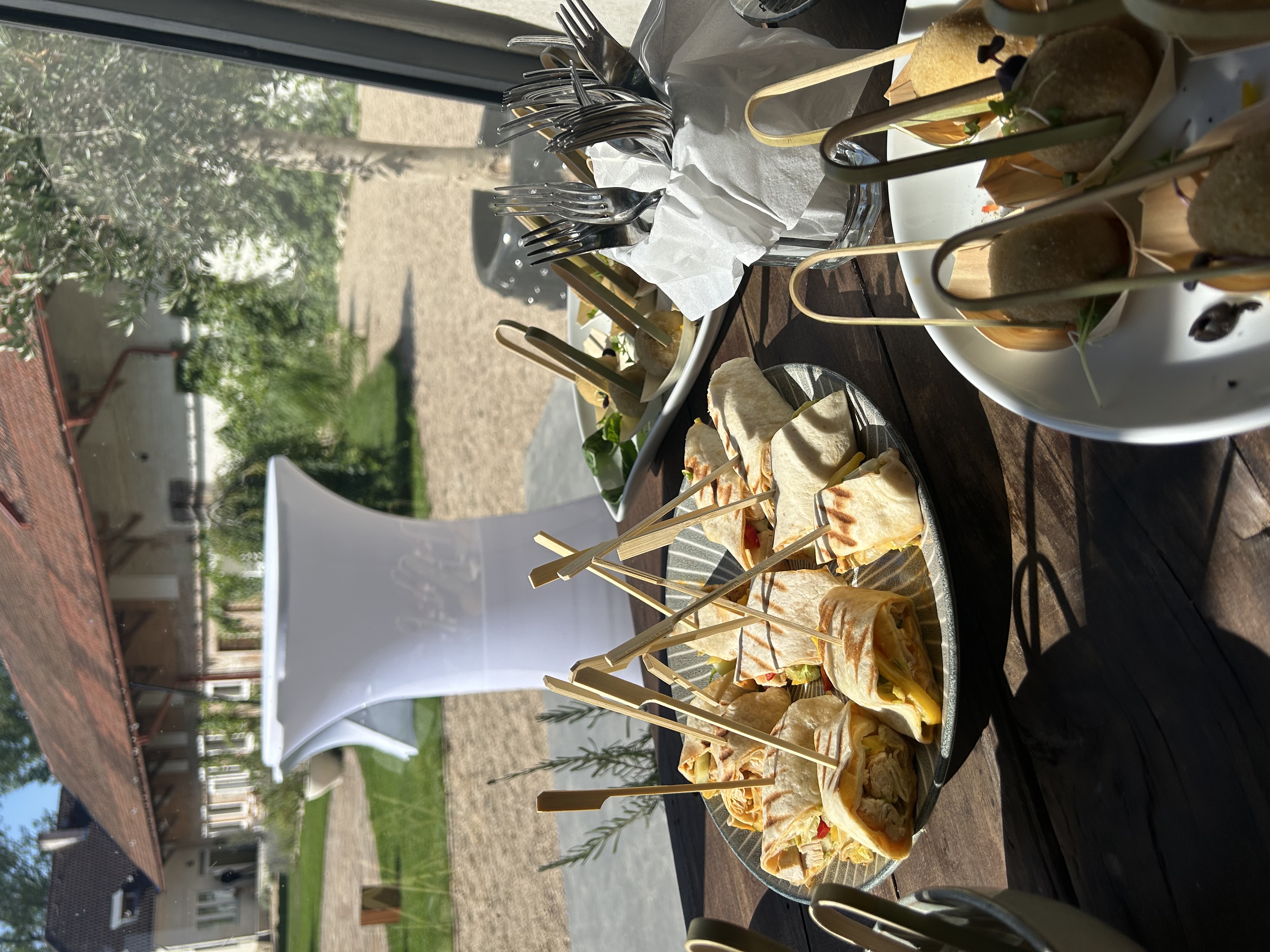 - Kuřecí mini wrapy v tortille, kuřecími prsíčky v sezamu, zeleninou a ledovým salátem
