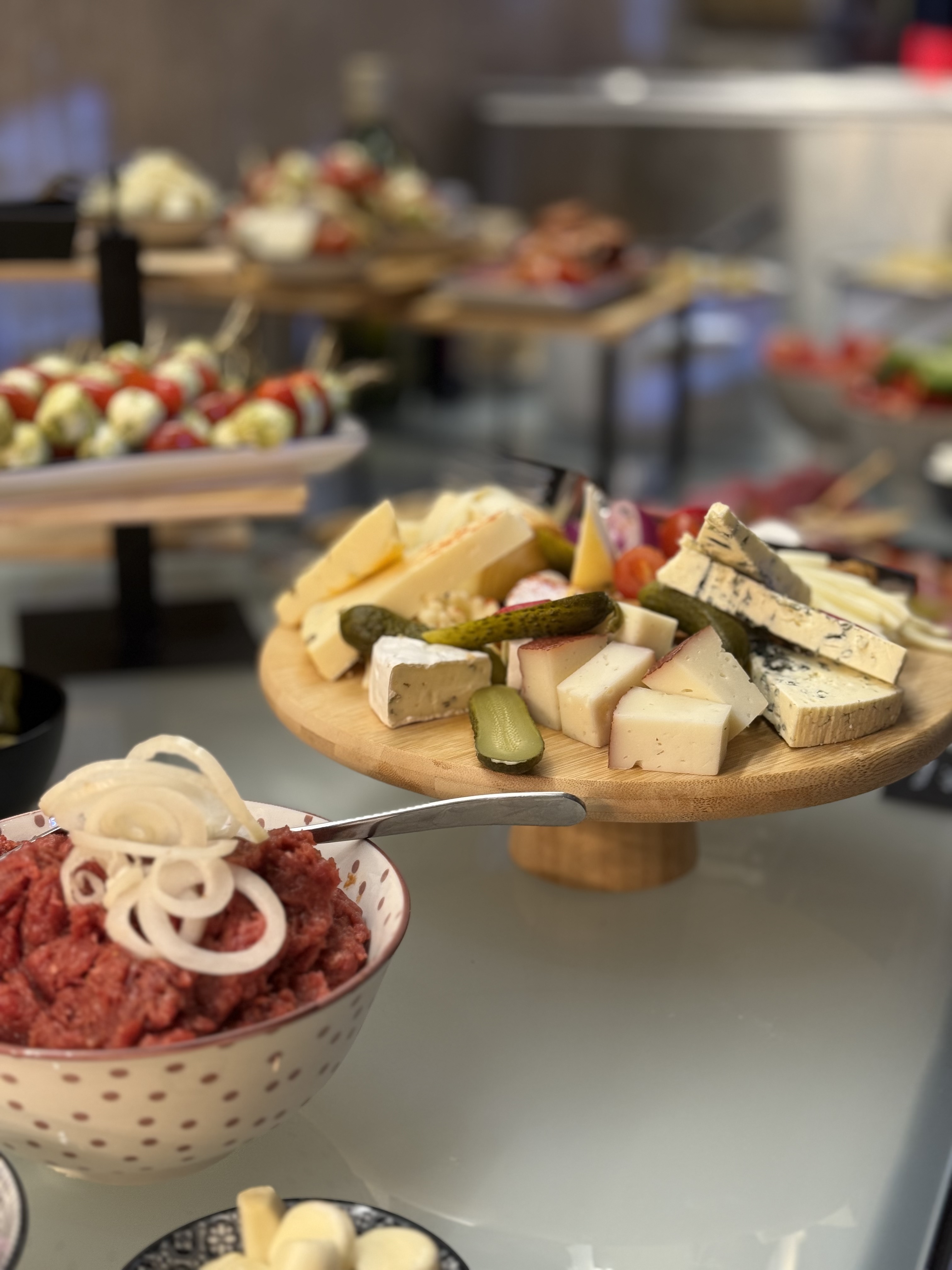 - doplňky (olivy, balkánský sýr, slanina, olivový olej, dip, bylinková foccacia)