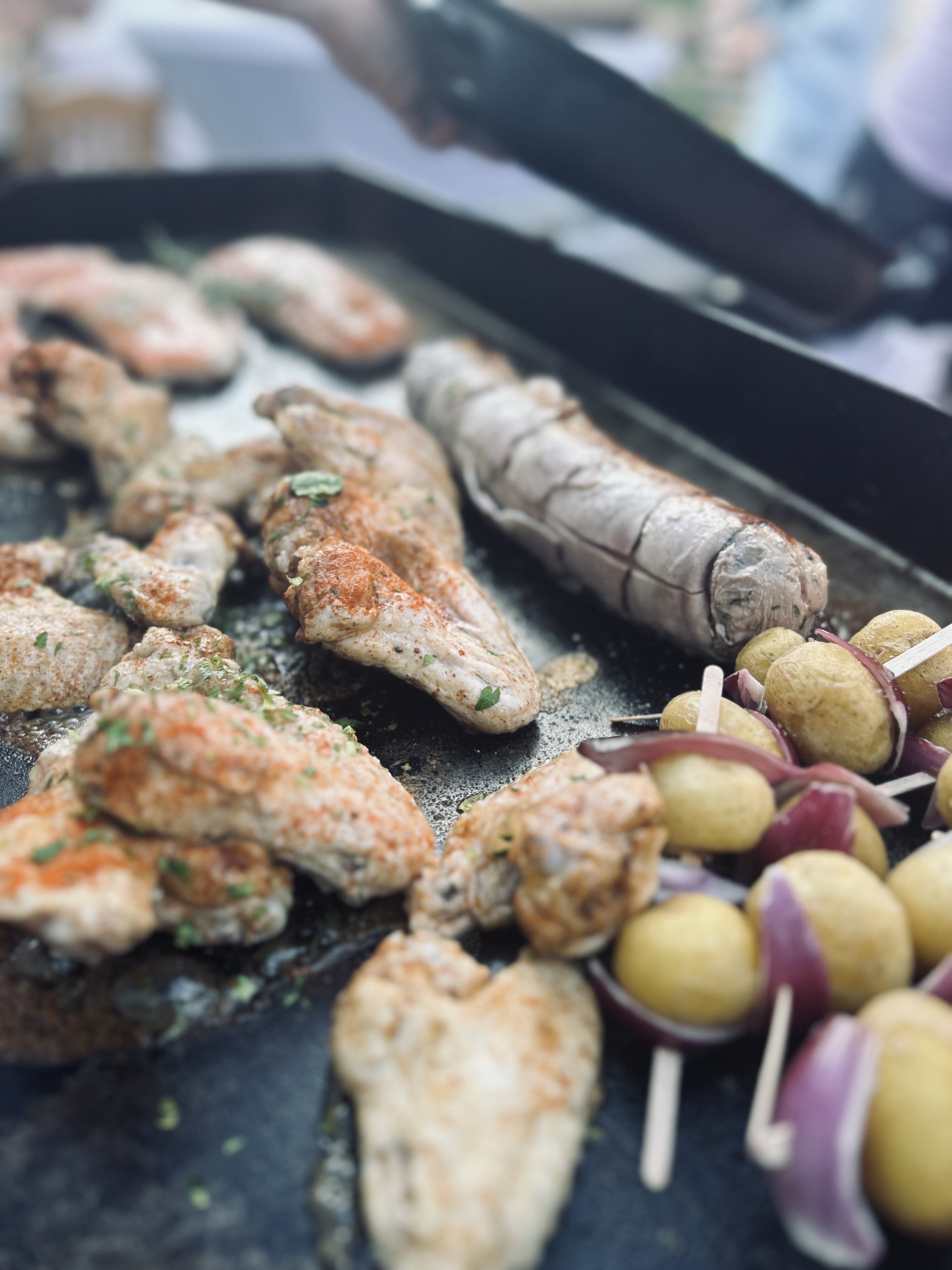 - Grilovaná zelenina (lilek, cuketa, žampión, paprika) Pečené mladé brambory s petrželkou