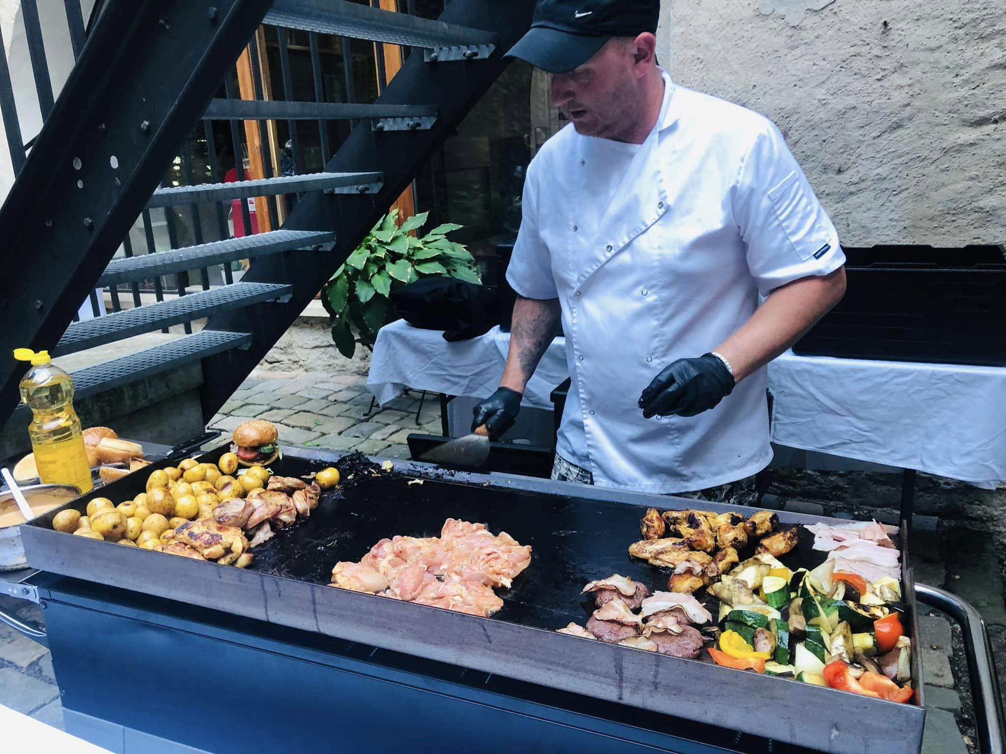 - Vepřová panenka s kuřecími prsíčky, pečená grilovaná zelenina, smetanové brambory