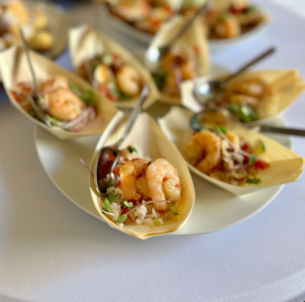 - Restované tygří krevety s česnekem a čerstvým chilli, olivová focaccia 20ks