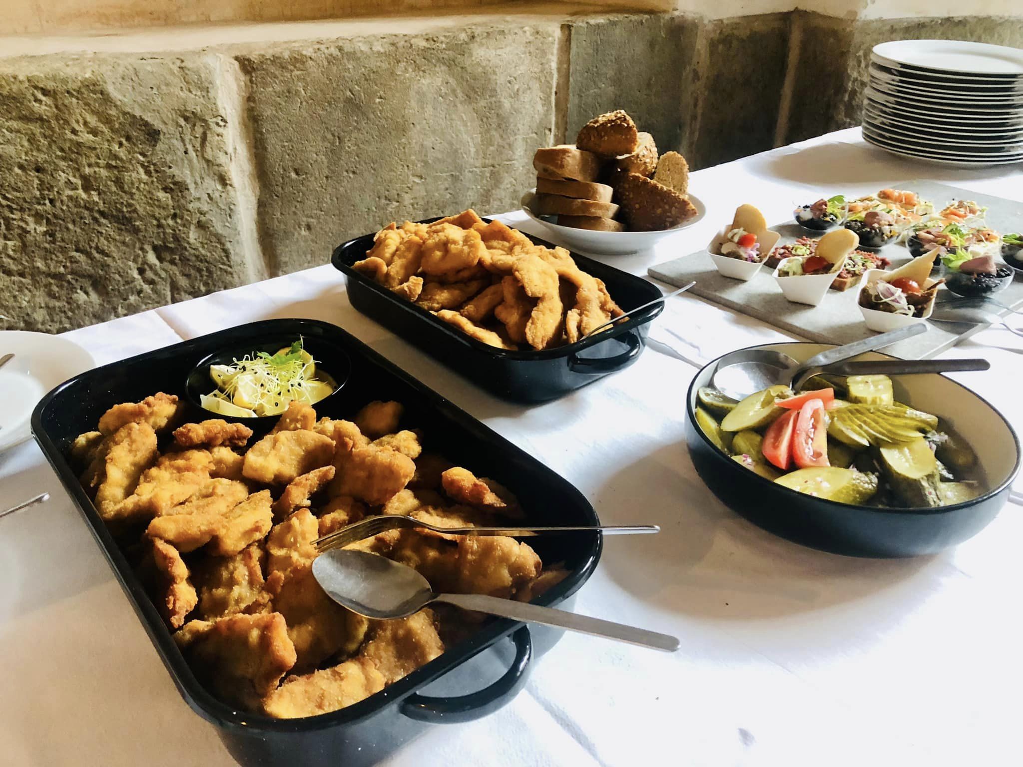 Variace mini řízečků(kuřecí,vepřové), okurka, chléb