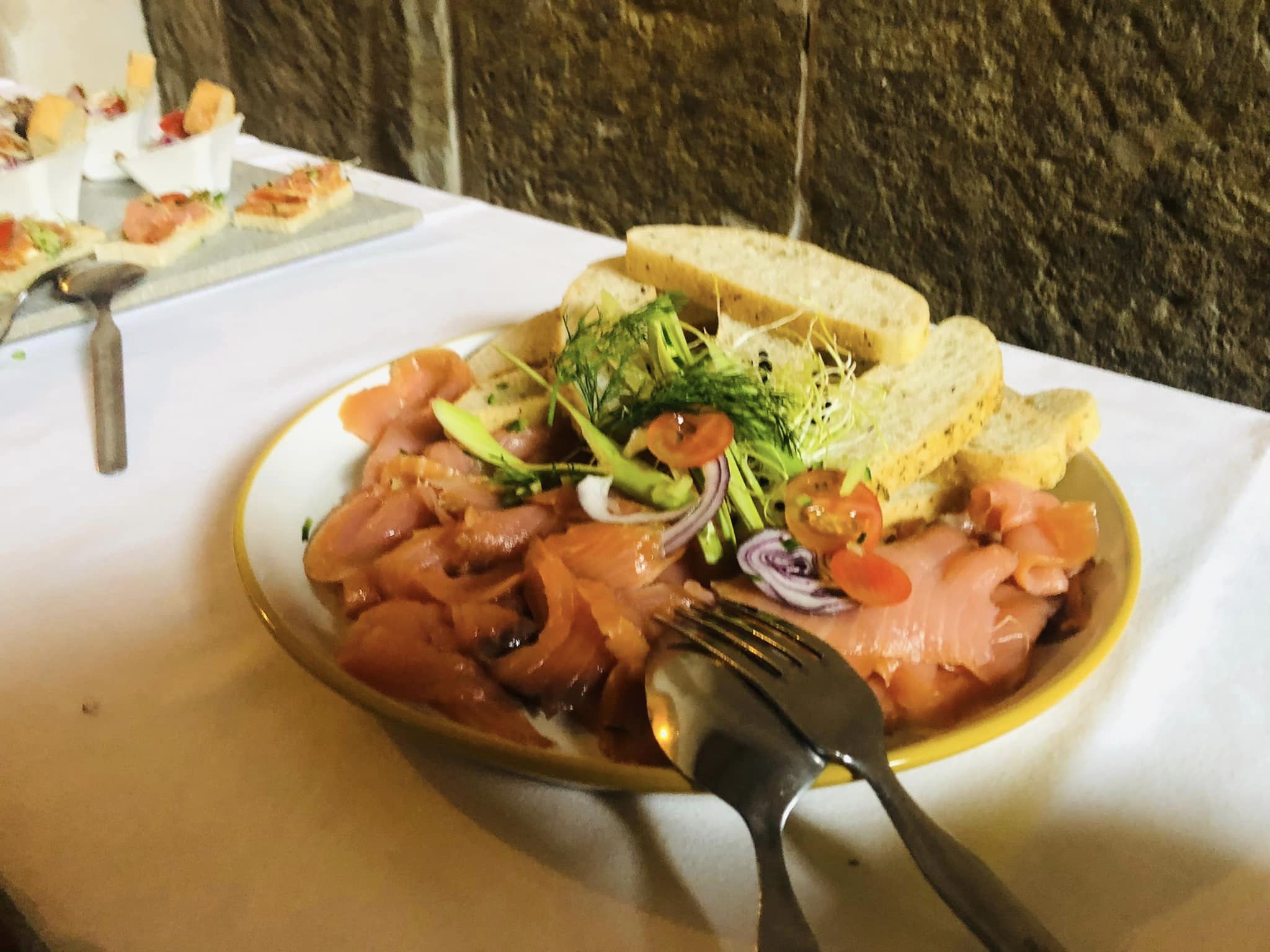 Vepřová panenka s kuřecími prsíčky, pečená grilovaná zelenina, smetanové brambory, demi glace